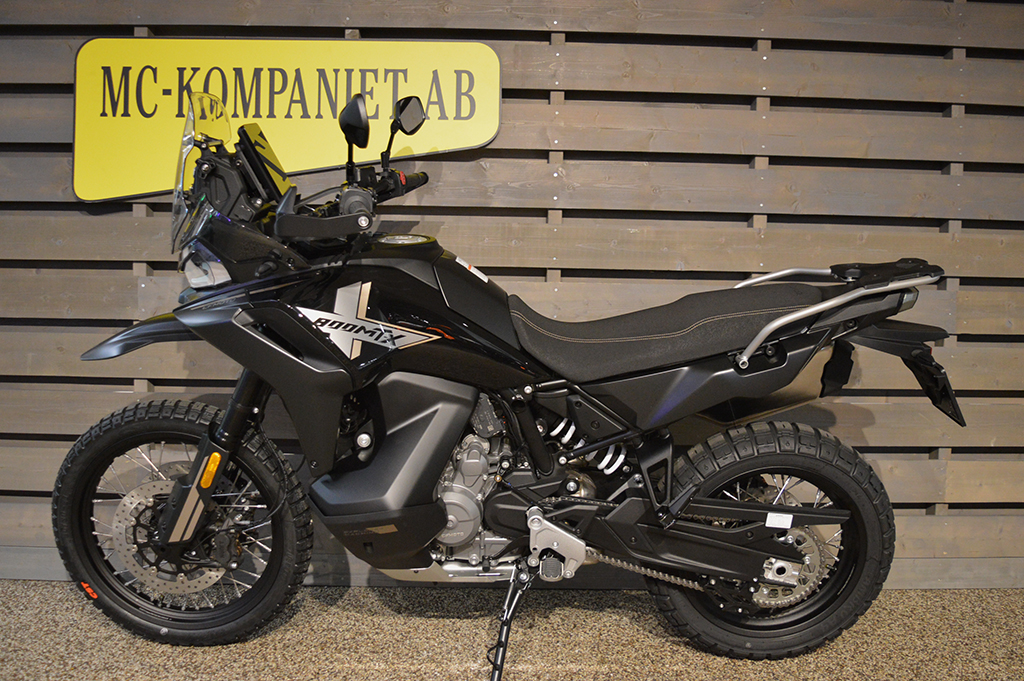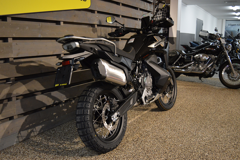 Nya 800 MT-X är en uppdaterad och mer offroadanpassad modell av 800 MT. Kommer 2026 även i låg modell med 830 mm sitthöjd mot 870 mm standard. Självklart med 21″ framhjul samt 18″ bak. Fortfarande utrustad med samma knivskarpa köregenskaper tack vare fullt justerbar fjädring (20 steg fram +bak) och dubbelverkande quickshifter. Fullproppad med toppmodern elektronik, ny 7″ vertikal display / T-BOX / körlägen / justerbar ABS / justerbar traction control / farthållare mm. Samma motor som KTM 790 / 890. 22.5 liters bränsletank + 8 liter med tillval.