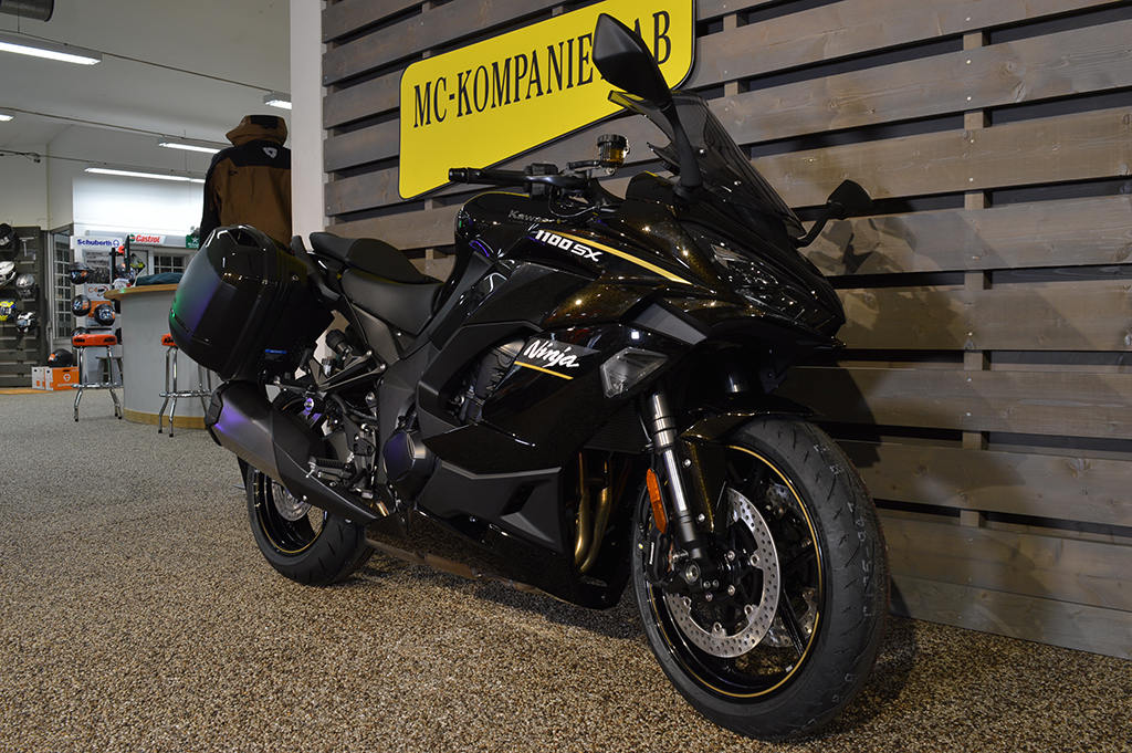 Utrustad med tourerpaket. Tillkommer på priset. Den nya Ninja 1100SX erbjuder det ultimata inom sporttouring. Ninja 1100SX är skapad för att leverera hög prestanda, avancerad teknik och superb komfort för sportåkning och heldagsturer, och sätter en ny standard för sporttouringprestanda. Köp till Performance paket innehållande Akrapovic slip on/cuts/kraschpuck/skyddsfilm tft skärm/tankpad/tonad ruta för 20 100:- eller Touring paket innehållande SP telefonhållare/sidoväskor med innerväskor/12v uttag/skyddfilm tft skärm/tankpad/tonad touringruta/värmehandtag för 19 700:- eller kombinera båda. Monteringskostnad tillkommer 48-månaders fabriksgaranti.