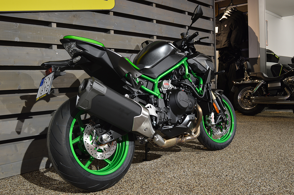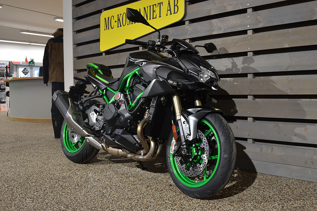 SE utförande med elektronisk fjädring från Showa med skyhook teknik, Att vara i toppen för 2024 års Z-familj är ett stort ansvar, vilket kräver en maskin med funktioner och specifikationer i världsklass – ”The Ultimate Z”. Z H2 SE är ett praktexempel på Kawasakis unika designfilosofi ”Sugomi” – där varje estetisk innovation matchas av likvärdig teknisk utveckling – och kommer fullpackad med intressanta, förarorienterade lösningar. Köp till Performancepaket innehållande Akrapovic/ singel cuts/ tankpad/ skyddsfilm tft skärm. 48-månaders fabriksgaranti.