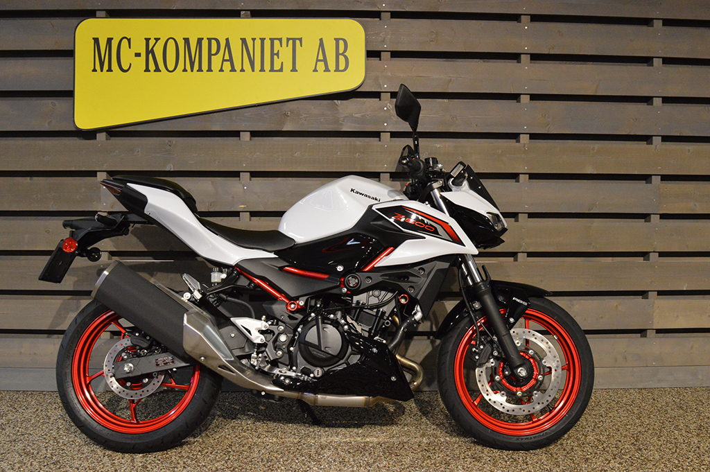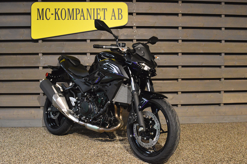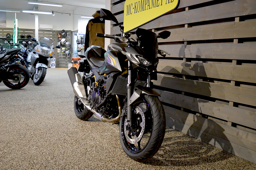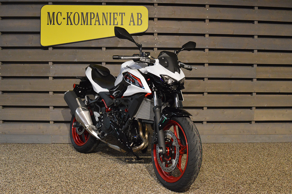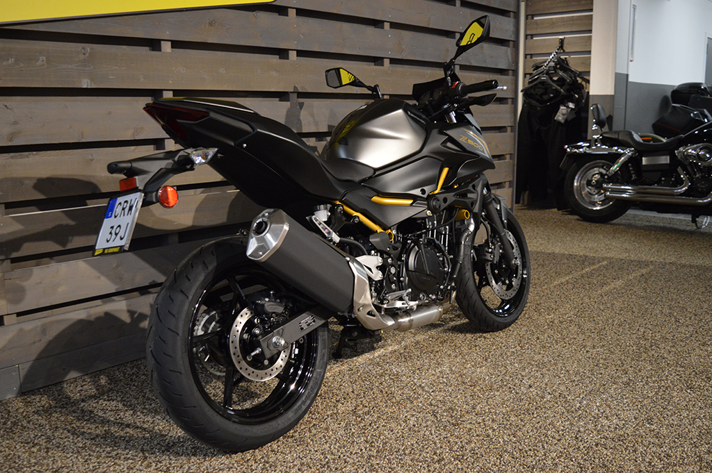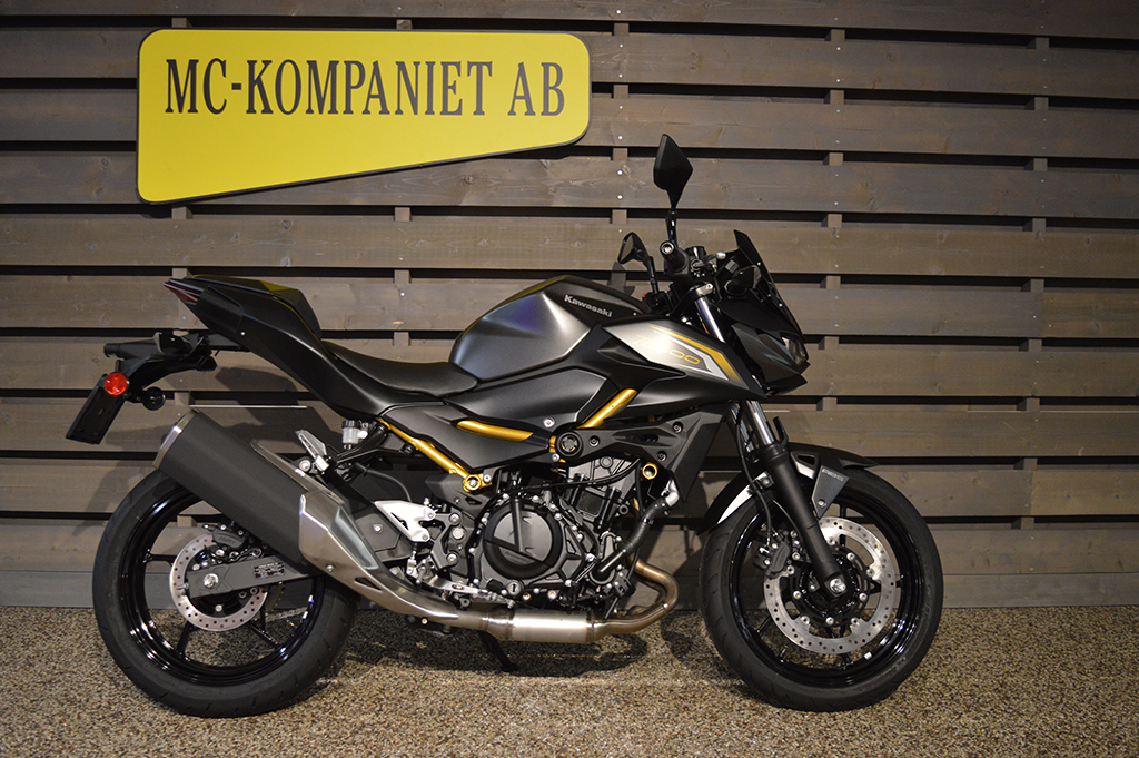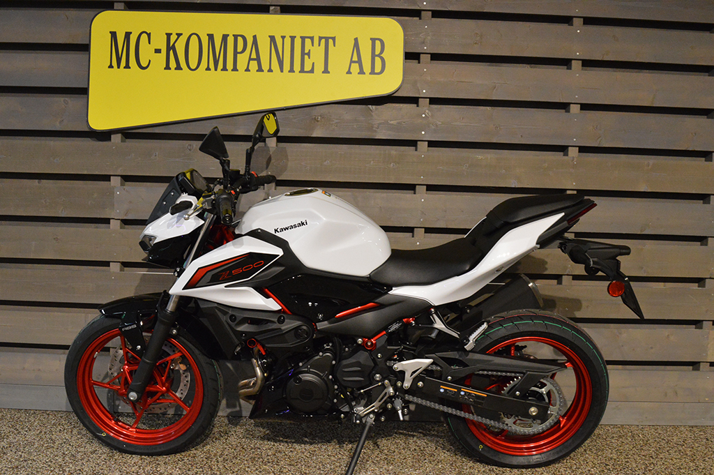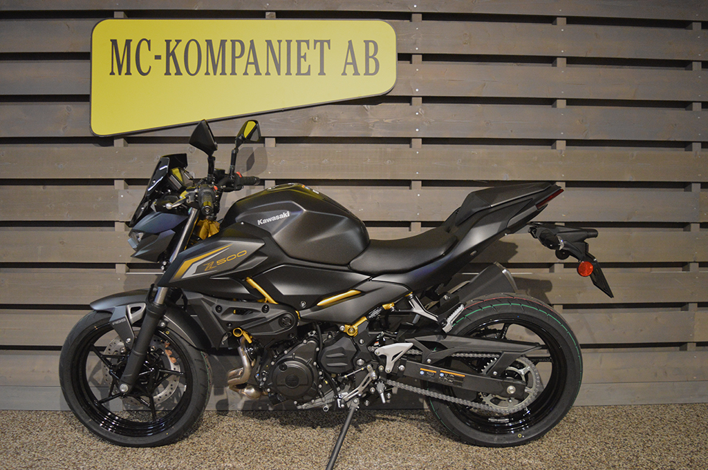 Alla ögon är på dig när du åker den helt nya Z500 ABS supernaked. Med en distinkt design och en kraftfull 451cc motor är denna aggressivt utformade streetfighter för dig som inte är rädd för att synas. 48 månaders fabriksgaranti. ABS. Mc med guldfärgad ram är utrustad med sportpaket, + 2800 kr. Se-modell (vit & Svart med grön ram) från 71 400 kr.