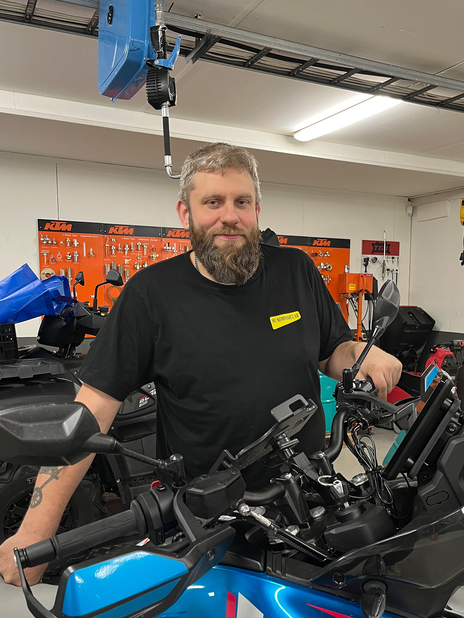 Johan har sedan barnsben varit intresserad av hojar så han är en tvättäkta entusiast. På MC-Kompaniet började han 2007 för att få lite av sina behov stillade. 2015 växlade Johan upp ett par steg och klev in som delägare ihop med “Eken” och Magnus.